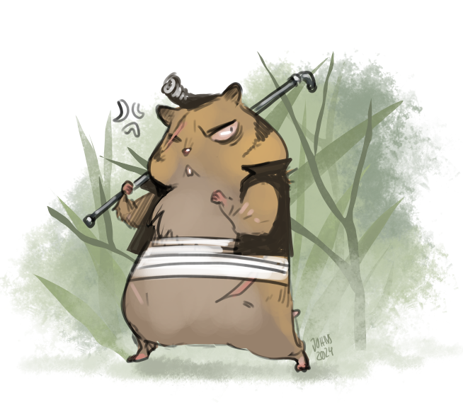 While generally resistant to authority and magical influence, he actively enjoys pampering, particularly grooming, which is one of the reasons why he is following Ulvama and to a much lesser extent, Erin.[2] While usually disinclined to obey the Hobgoblin [Shaman], even with her [Boss Around Wildlife] Skill,[3] he more or less treats her as part of his "tribe."[4] The Battle Hamster has a strong sense of pride, reacting negatively to perceived indignities such as Erin's amusement at a happy face marking on his fur - despite having no idea what a happy face is[2] - and was outraged at a plushie model made in his image.[4]