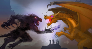 During the battle of the Winter Solstice, the fight between Zeladona, Cauwine, Silvania, Czautha’qshe, Rhisveri, and Visophecin unleashed a devastating slash across Izril north of Liscor. This slash damaged the door sealing the titan, allowing most of it to escape. One head, torso, arm, and leg of one titan and the arm of another made their way through the Troll kingdom, seeking to reassemble. The Trolls were unable to destroy or permanently stop the limbs, and so approached the Flooded Waters Tribe for aid. Rags was unable to destroy any limb either, but knew they had to be or the Titan would destroy her tribe.[2]